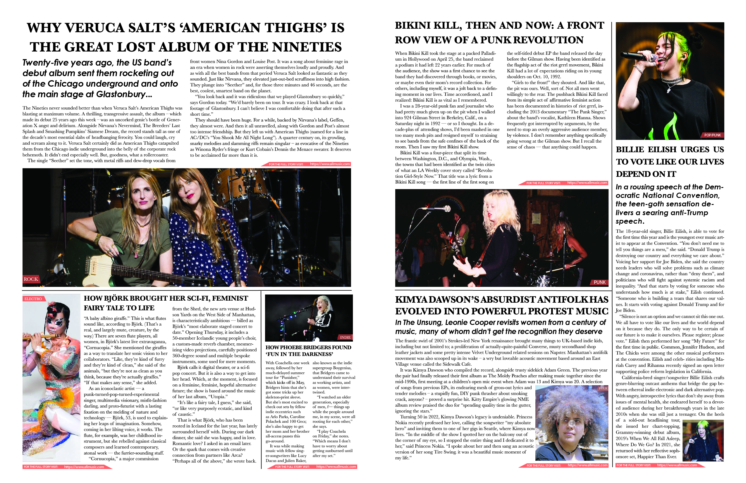 A fictional issue of the All Music Newsletter, featuring some of my favorite female musicians.